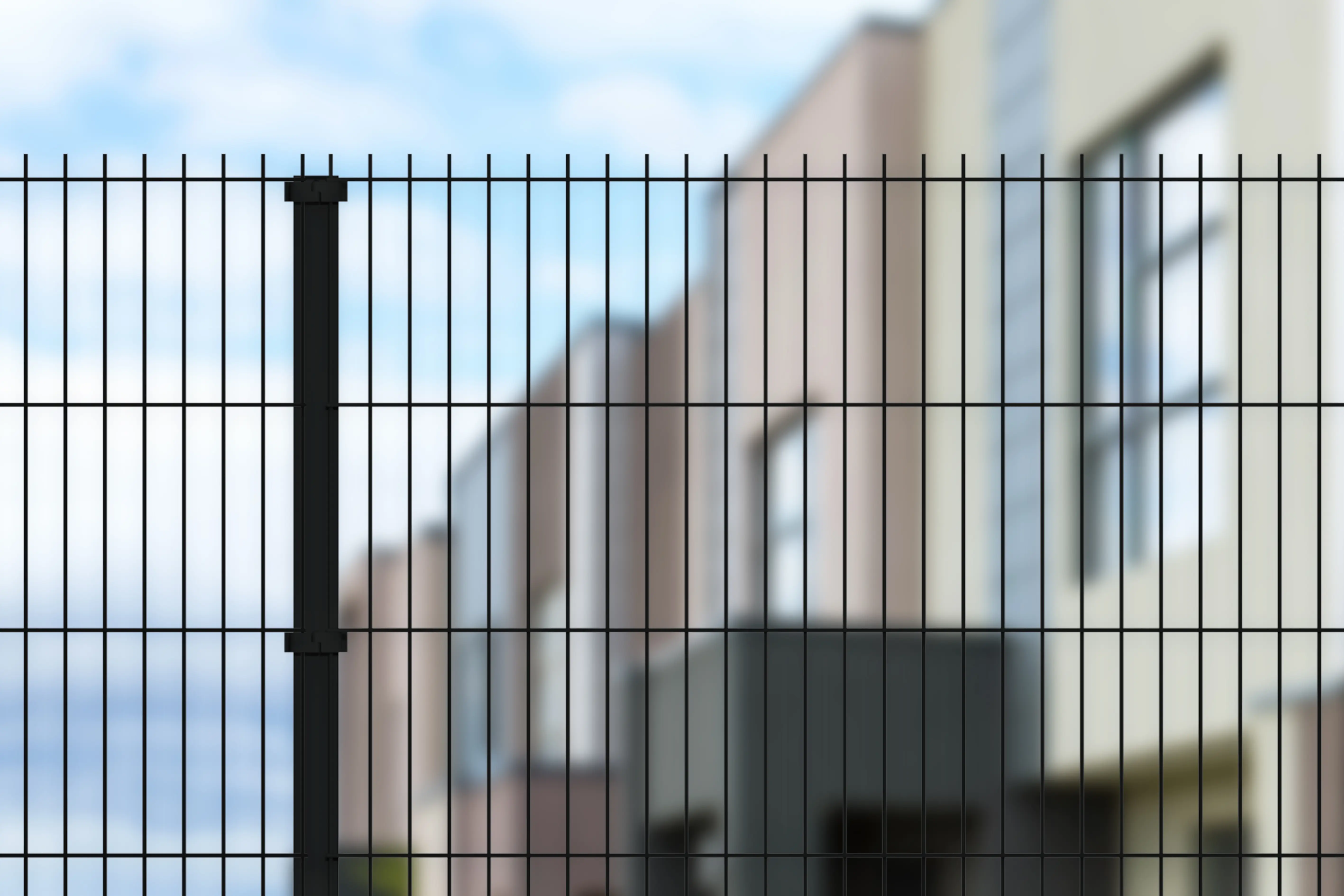 Reja tipo europea que se caracteriza por su doble alambre horizontal y cuenta con un tejido plano, minimalista y simétrico.